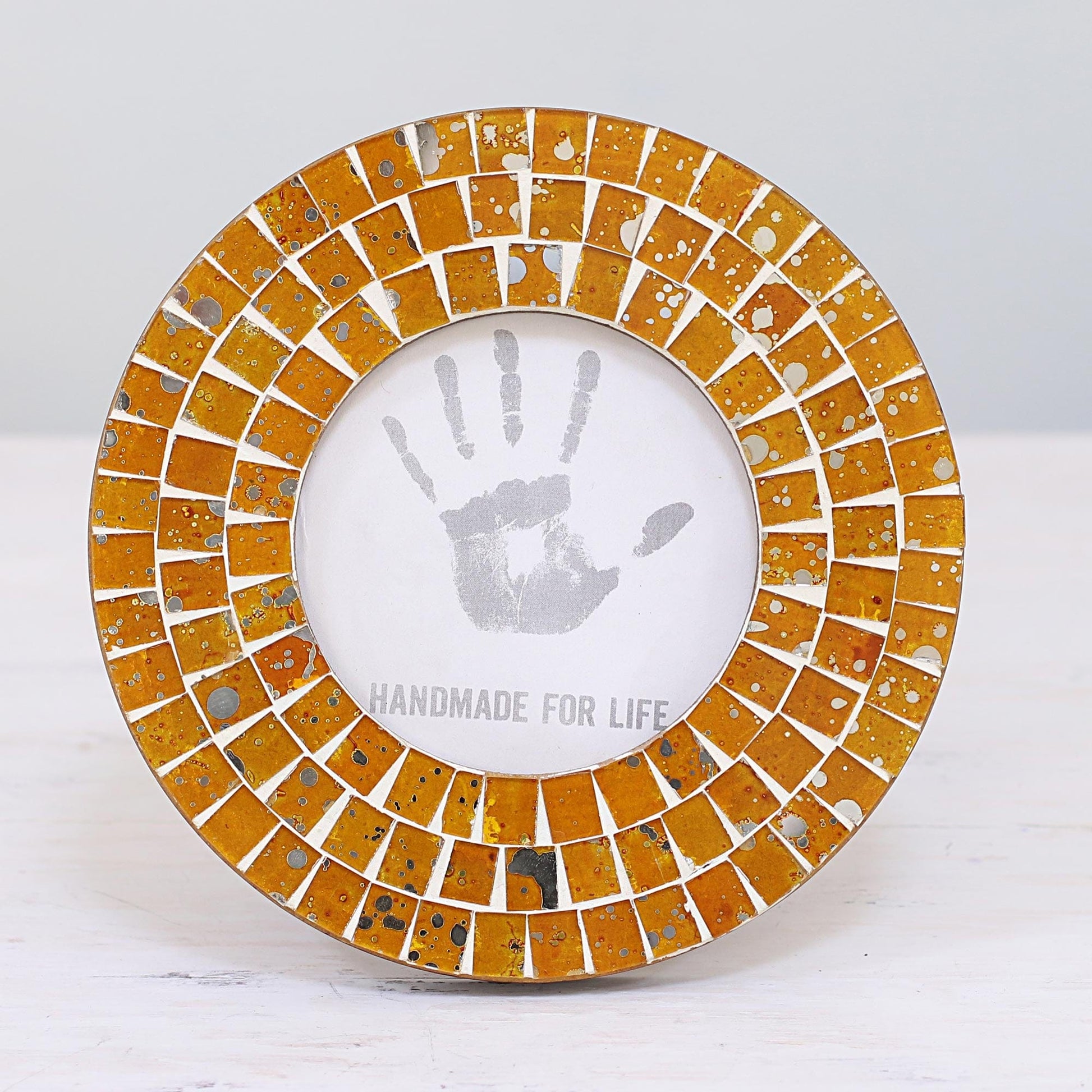 4 Inch Circular Orange Glass Mosaic Photo Frame from India - Bubbling Memories